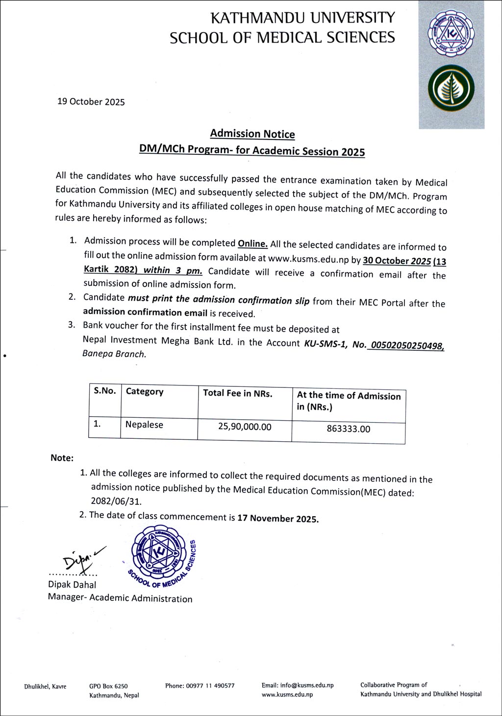 Admission Notice – DM/MCh Program For Academic Session 2025October 19, 2025October 19, 2025Print Apply Online – Must Login With Google Account ONline applicaton