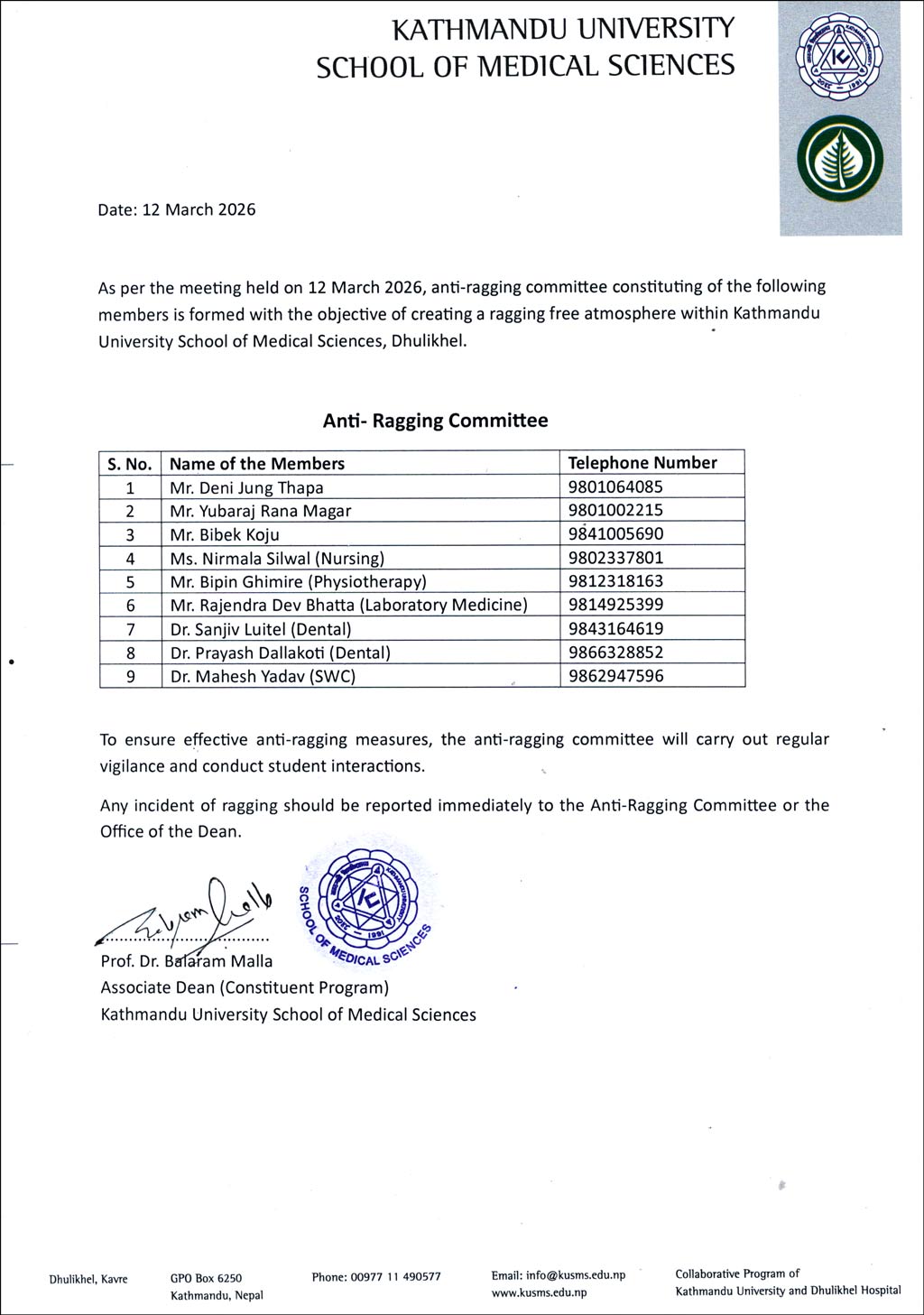 Notice Regarding Anti-Ragging